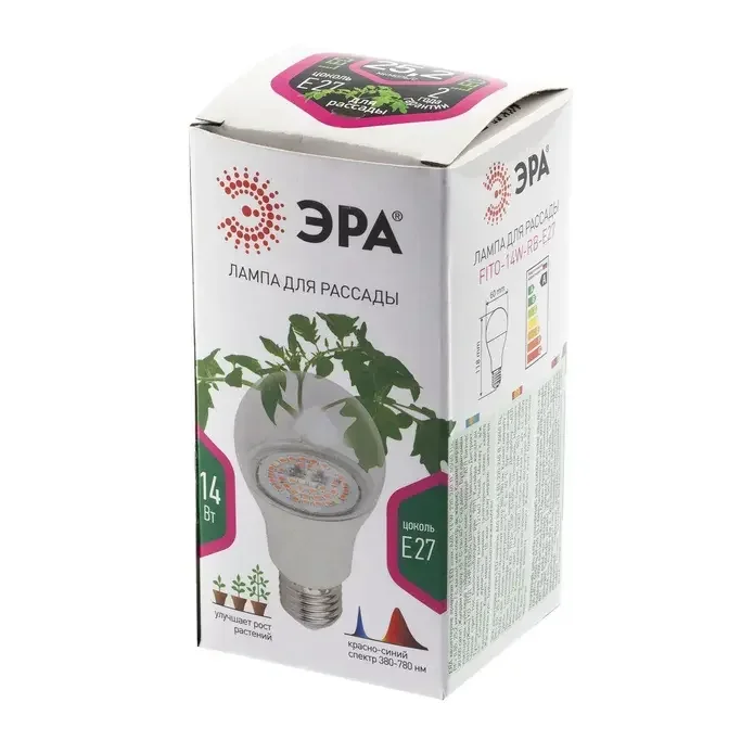 Лампа светодиодная для растений ЭРА E27 14W 1310K прозрачная Fito-14W-RB-E27 Б0050602