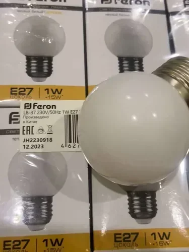 Лампа светодиодная Feron LB-37 Шарик матовый E27 1W 230V 2700K, 25878