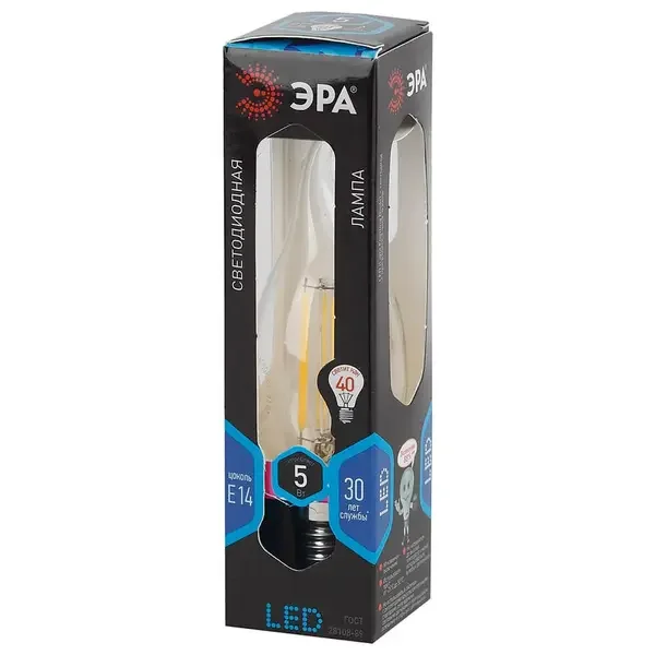 Лампа светодиодная филаментная ЭРА E14 5W 4000K прозрачная F-LED BXS-5W-840-E14 Б0043448
