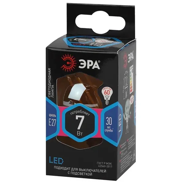 Лампа светодиодная филаментная ЭРА E27 7W 4000K золотая F-LED P45-7W-840-E27 gold Б0047019
