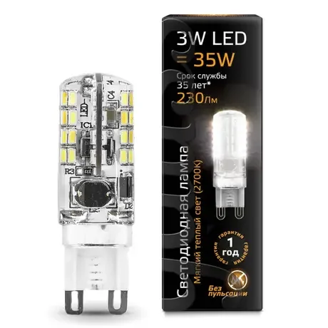 Лампа светодиодная Gauss G9 3W 2700K прозрачная 107709103