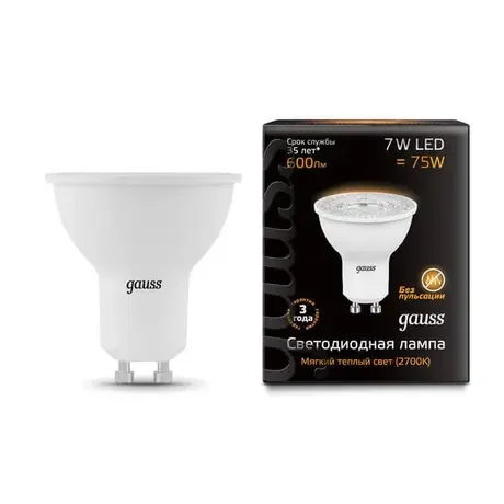 Лампа светодиодная Gauss GU10 7W 3000K матовая 101506107