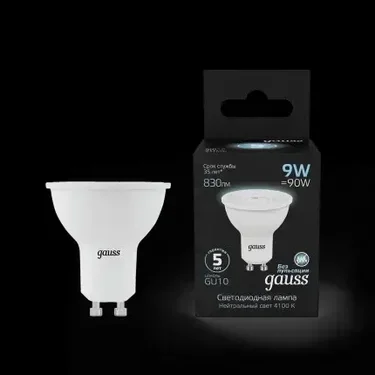 Лампа светодиодная Gauss GU10 9W 4100K матовая 101506209