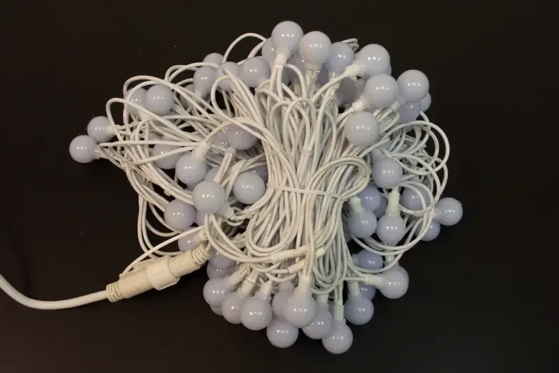 LED-PLR-100-15M-240V-B/WH 100 LED цвет синий, белые матовые шарики D2,5см, 15m, белый кауч.провод,