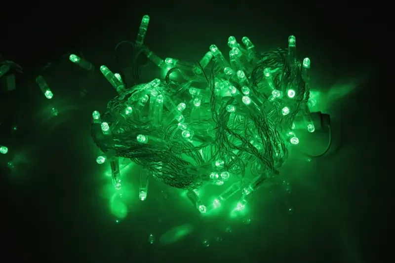 LED-PLS-100-10M-240V-G/C-W/O, Зеленая/прозрачны провод, соединяемая (без силового шнура) С КОЛПАЧКОМ