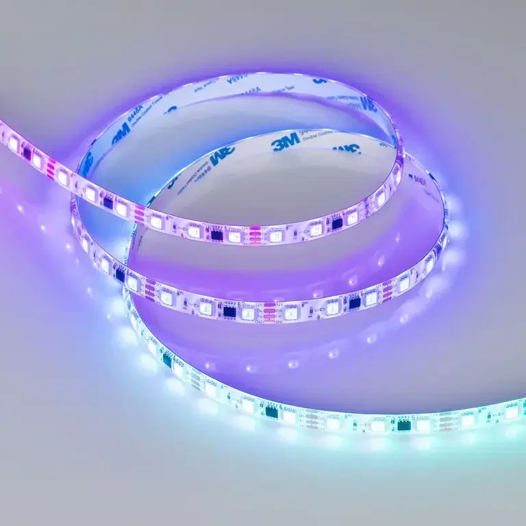 - RGB-лента с возможностью настройки цвета и эффектов через пульт или приложение, идеальна для создания динамичного освещения.