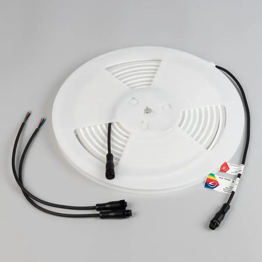 Лента герметичная WAVE-TOP-PU-H120-10x10mm 24V RGB (10 W/m, IP68, 5m, wire x2) (Arlight, Вывод боковой, 3 года)