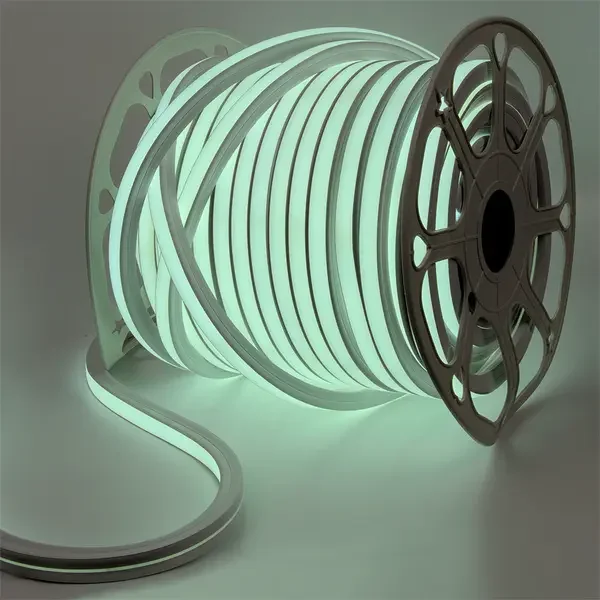 - Светодиодный неон — современная альтернатива традиционному неоновому освещению. Гибкая и безопасная лента с мягким равномерным свечением, идеальна для создания изогнутых форм, вывесок и декоративной подсветки.