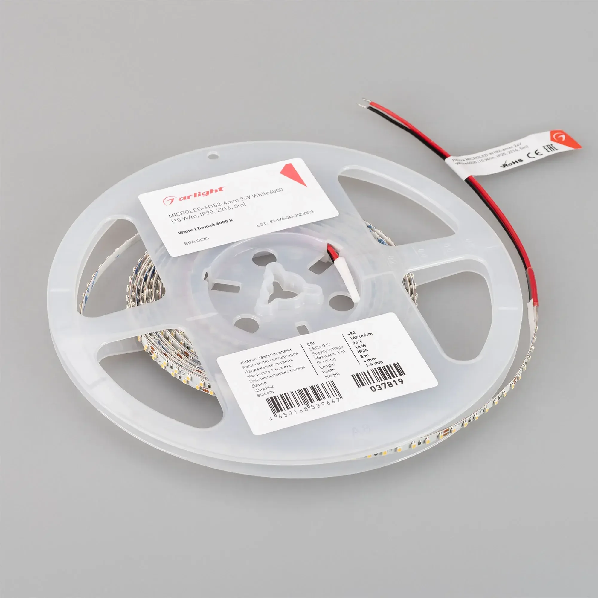 Лента MICROLED-M182-4mm 24V White6000 (10 W/m, IP20, 2216, 5m) (Arlight, узкая)