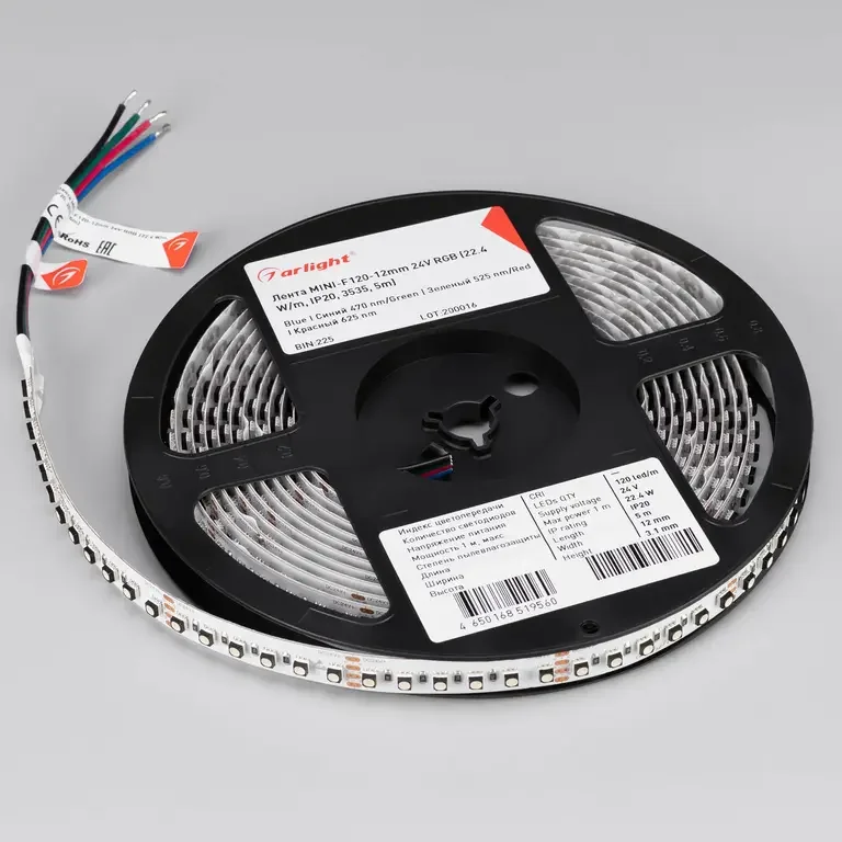 Лента MINI-F120-12mm 24V RGB (22.4 W/m, IP20, 3535, 5m) (Arlight, Открытый)