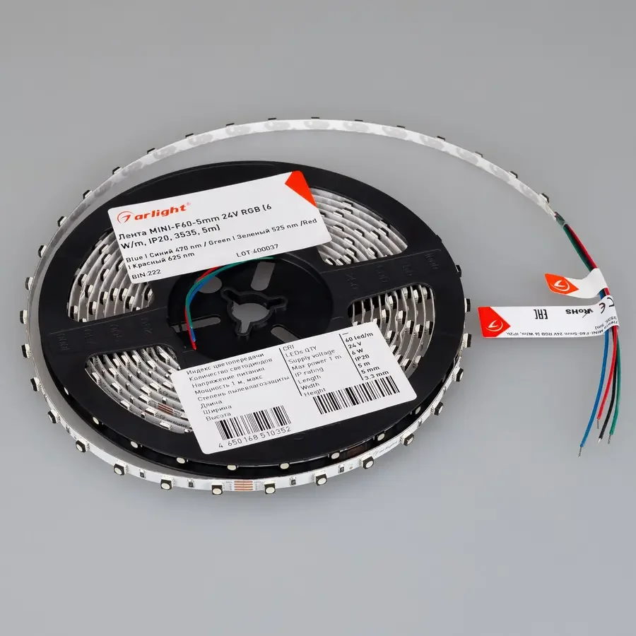 Лента MINI-F60-5mm 24V RGB (6 W/m, IP20, 3535, 5m) (Arlight, узкая)