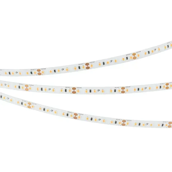 Лента RT-A120-8mm 24V Warm2400 (9.6 W/m, IP20, 2835, 5m) (Arlight, Открытый)