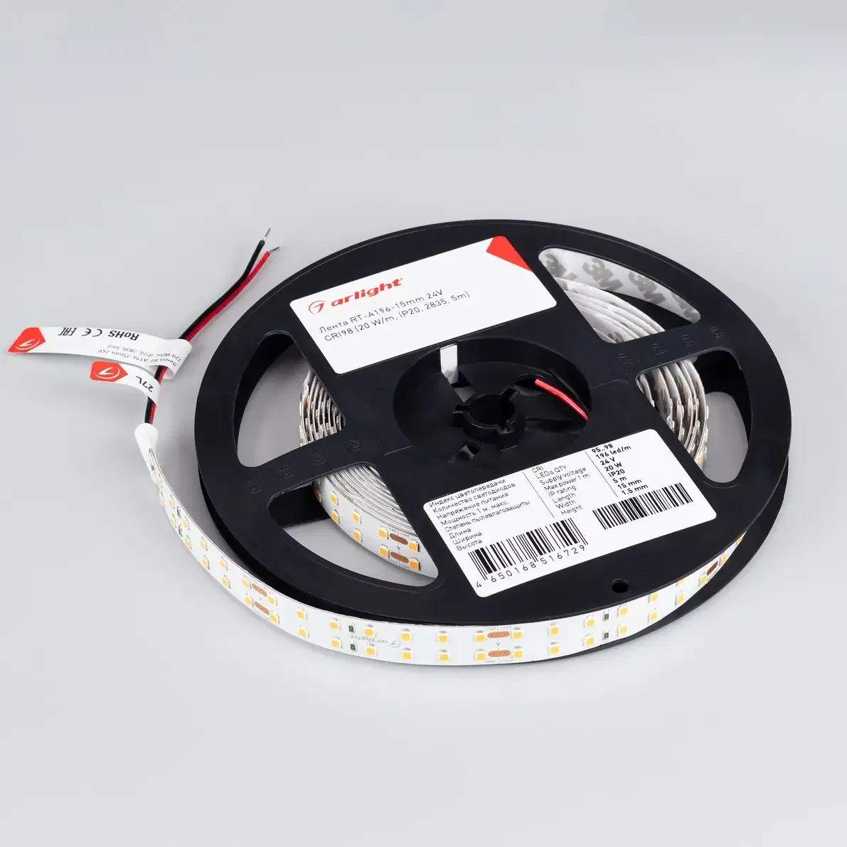 Лента RT-A196-15mm 24V Warm3000 (20 W/m, IP20, 2835, 5m) (Arlight, Открытый)
