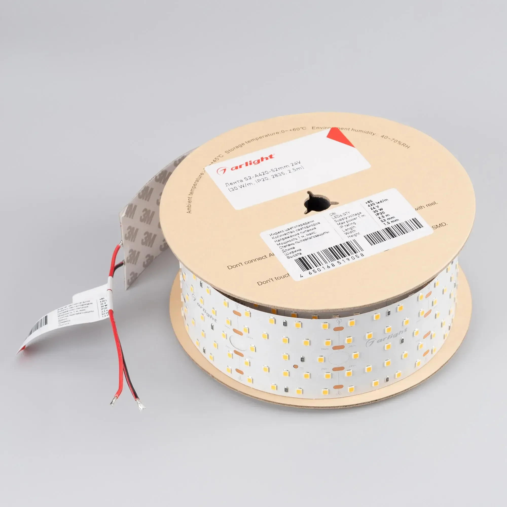 Лента S2-2500 24V Warm 2700K 52mm (2835, 420 LED/m, LUX) (Arlight, 30 Вт/м, IP20)