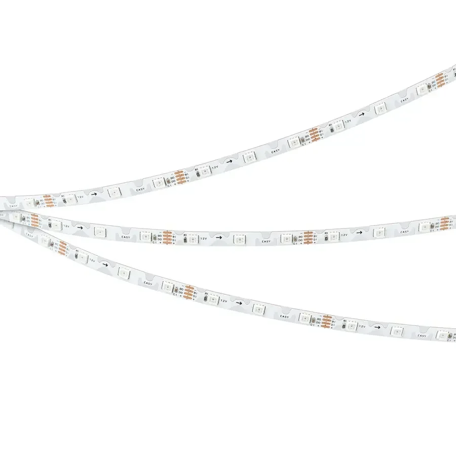 - Адресная светодиодная лента позволяет управлять каждым светодиодом индивидуально, создавая сложные световые эффекты и анимации, идеальна для декоративного освещения, рекламных вывесок и создания уникальных световых инсталляций.