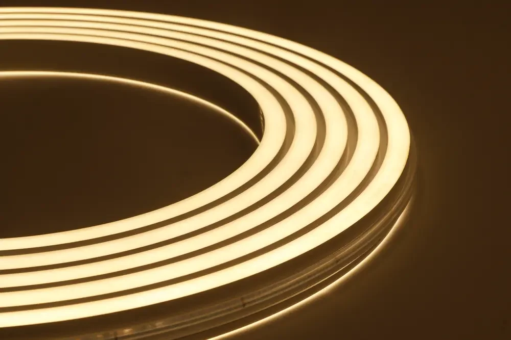 - Светодиодный неон — современная альтернатива традиционному неоновому освещению. Гибкая и безопасная лента с мягким равномерным свечением, идеальна для создания изогнутых форм, вывесок и декоративной подсветки.