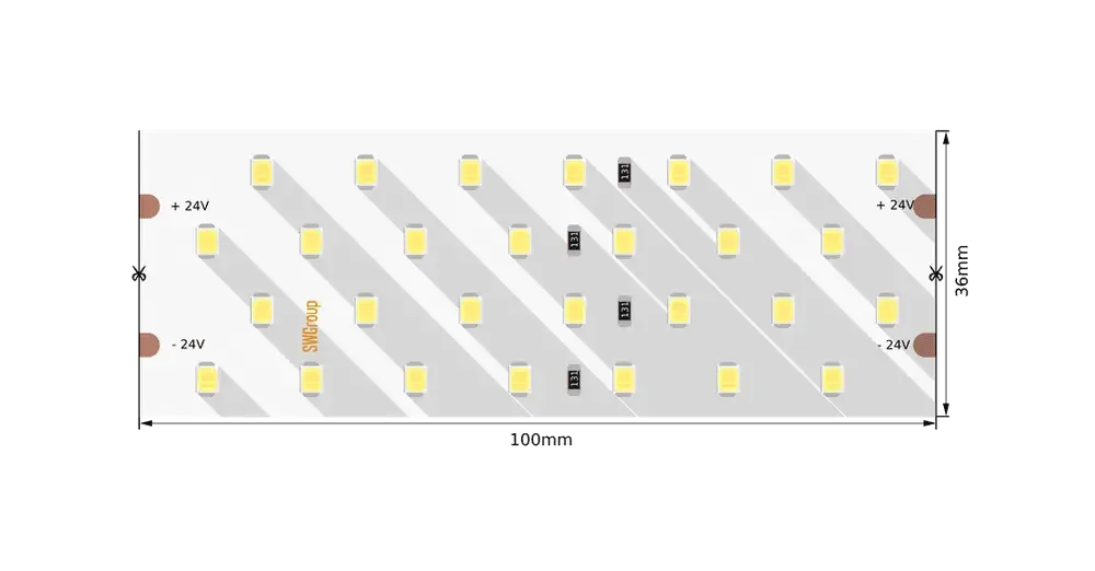 - Модели с напряжением 24 вольта обладают большей надежностью, яркостью и удобством подключения при использовании диммеров и контроллеров.