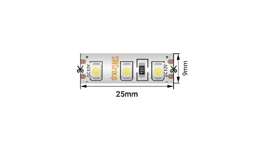 Светодиодная лента 3528, 120 LED/м, 9,6 Вт/м, 12В , IP66, Цвет: Теплый белый, SWG3120-12-9.6-WW-66-M