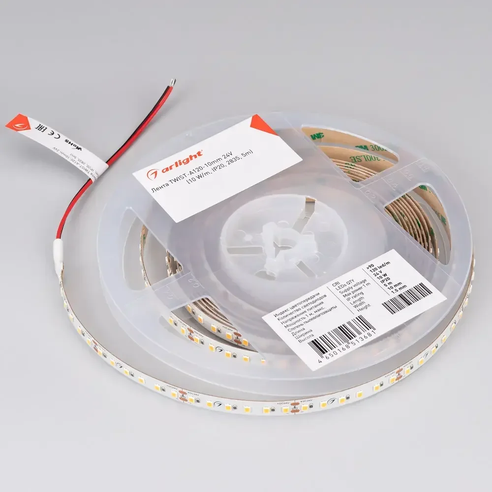 Лента TWIST-A120-10mm 24V Warm3000 (10 W/m, IP20, 2835, 5m) (Arlight, Открытый)