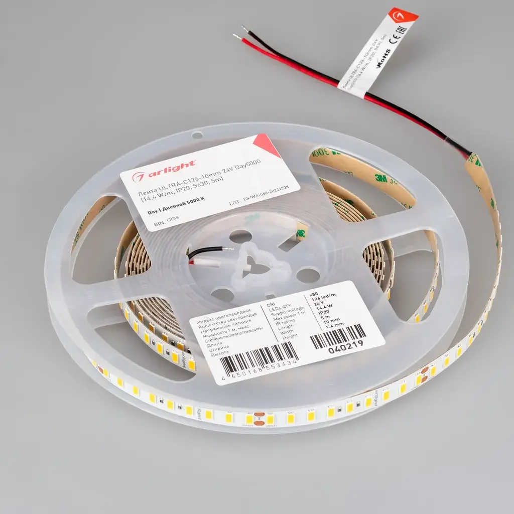 Лента ULTRA-C126-10mm 24V Day5000 (14.4 W/m, IP20, 5630, 5m) (Arlight, высок.эфф.200 лм/Вт)