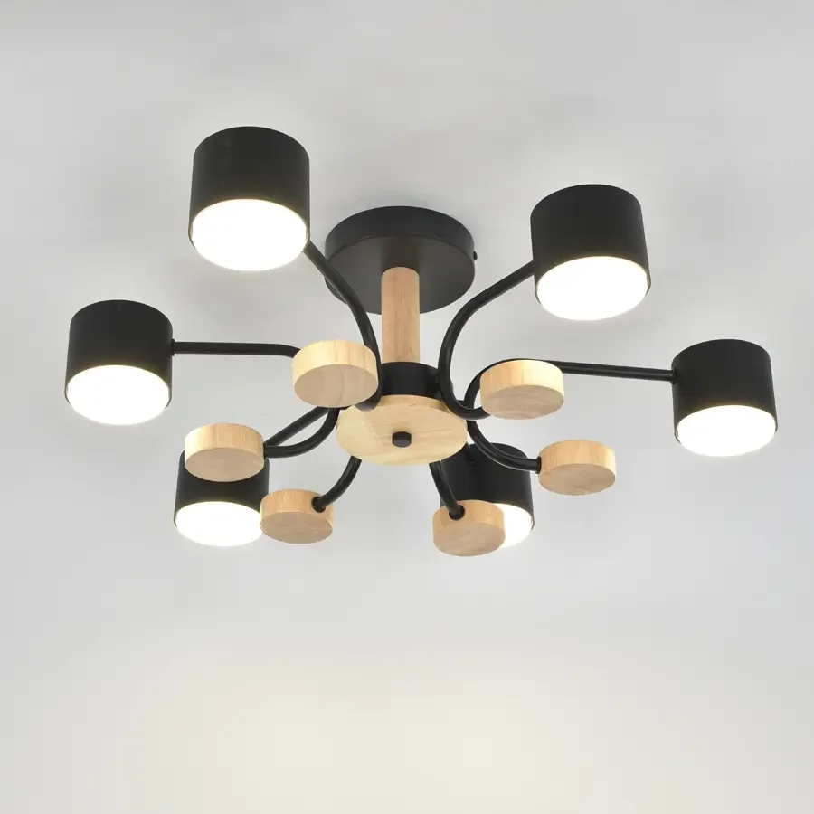 Люстра под лампу GCHL-6GX53-M Черная+Дерево Альберо