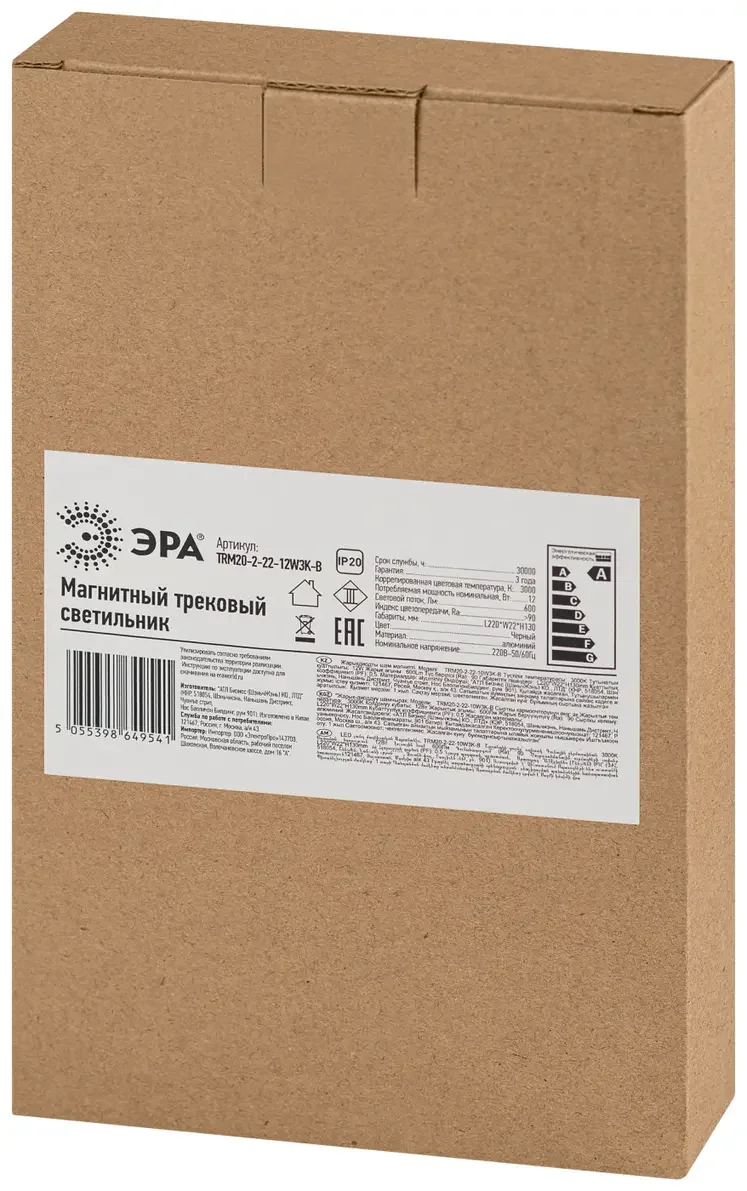 Магнитный трековый светильник ЭРА TRM20-2-22-12W3K-B для системы NOVA 48V 12Вт 3000К заливающий свет черный