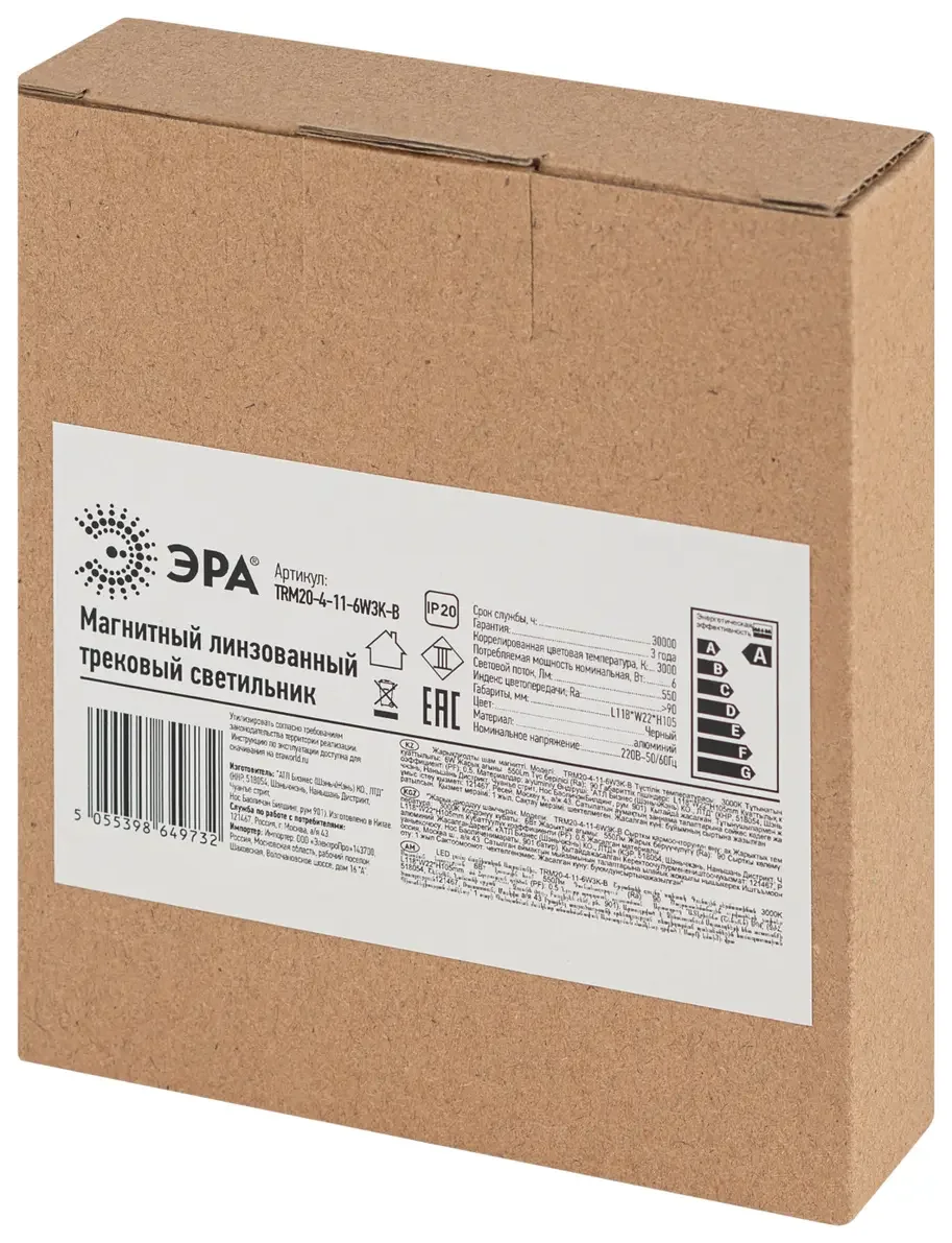 Магнитный трековый светильник ЭРА TRM20-4-11-6W3K-B для системы NOVA 48V 6Вт 3000К направленный свет черный