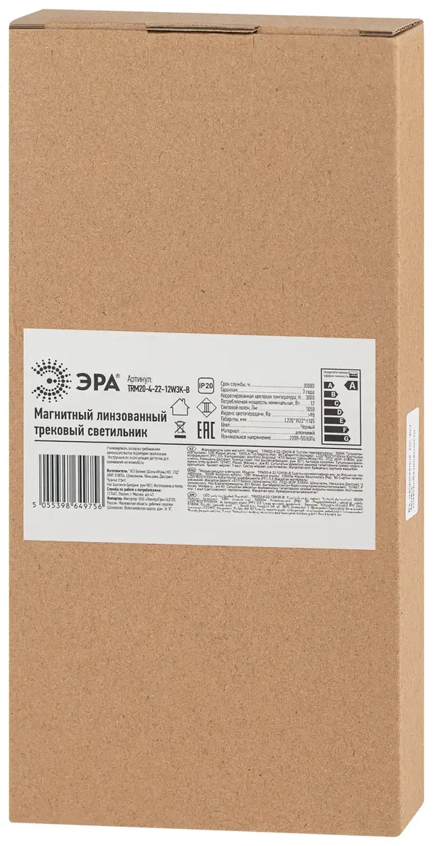 Магнитный трековый светильник ЭРА TRM20-4-22-12W3K-B для системы NOVA 48V 12Вт 3000К направленный свет черный