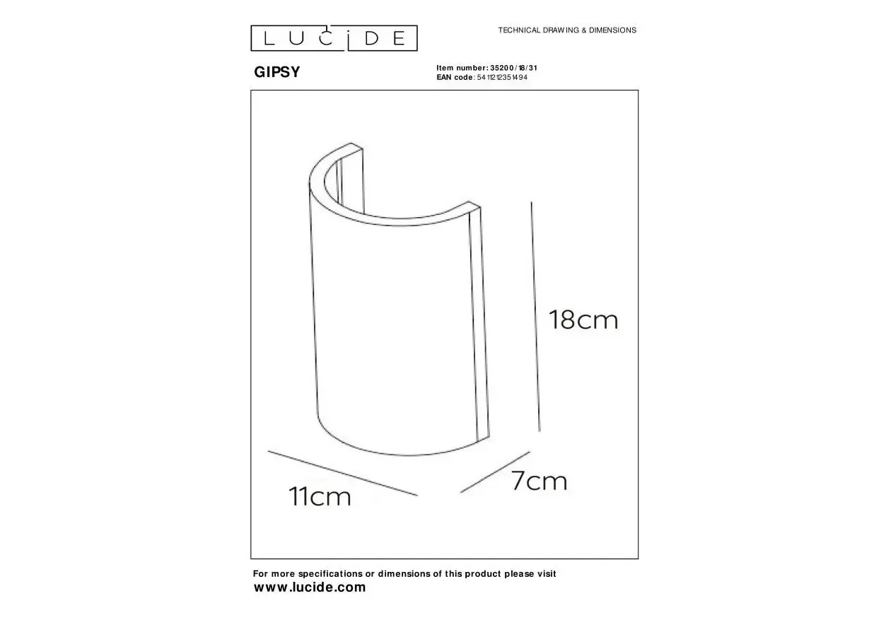 Настенный светильник Lucide Gipsy 35200/18/31