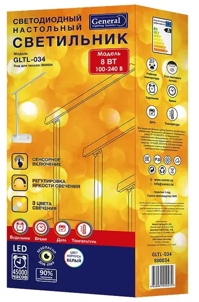Настольный светильник GLTL-034 8вт 610лм диспл с часами