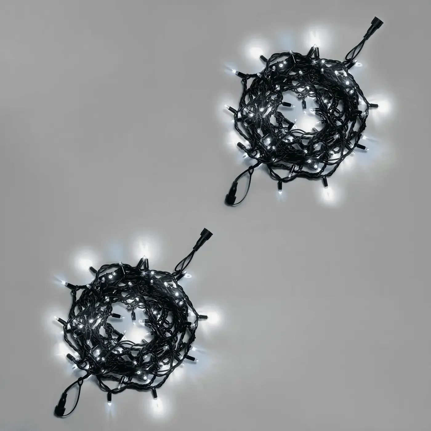 Нить 10м, 100 LED, соединяемая, с мерцанием, 220В, IP65, чёрный резиновый провод 3.3мм, БЕЛЫЙ