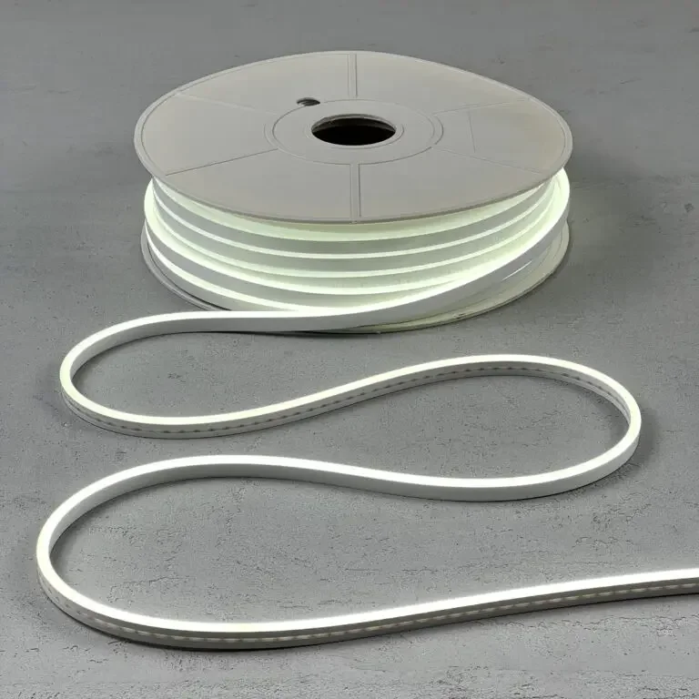 - Светодиодный неон — современная альтернатива традиционному неоновому освещению. Гибкая и безопасная лента с мягким равномерным свечением, идеальна для создания изогнутых форм, вывесок и декоративной подсветки.