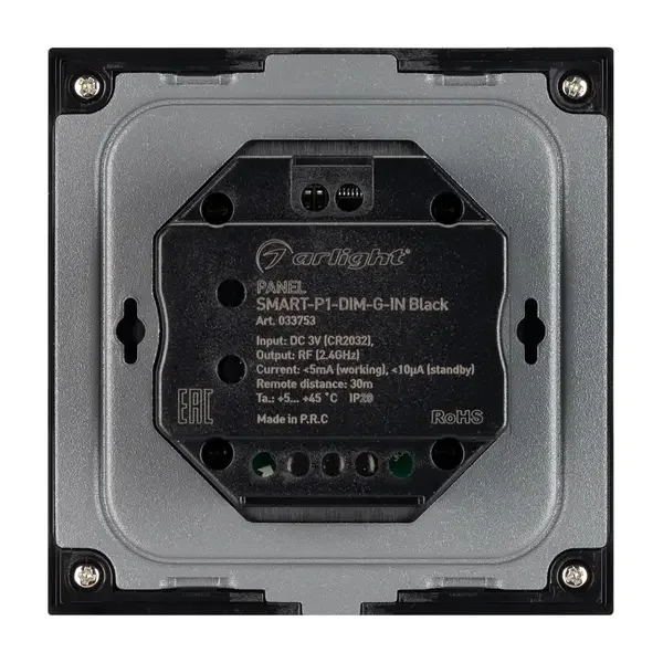 Панель SMART-P1-DIM-G-IN Black (3V, Rotary, 2.4G) (Arlight, IP20 Пластик, 5 лет)