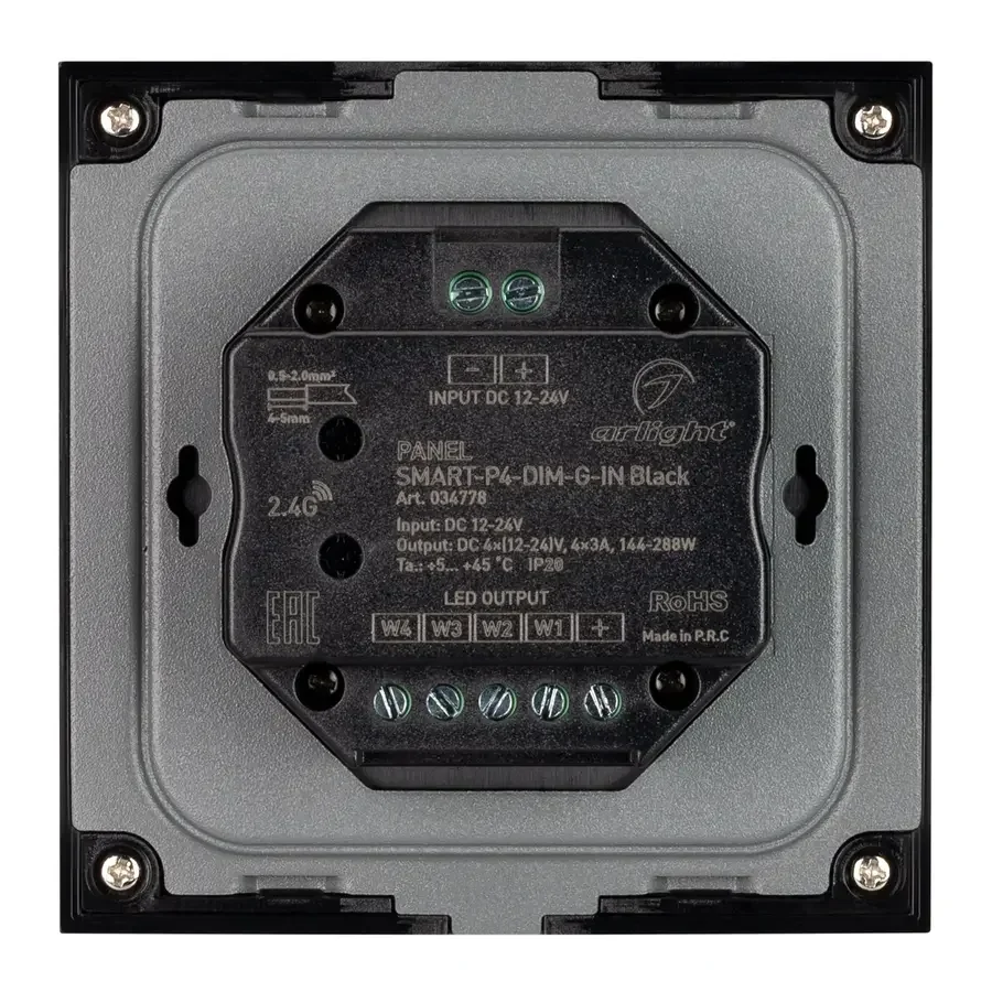 Панель SMART-P4-DIM-G-IN Black (12-24V, 4x3A, Sens, 2.4G) (Arlight, IP20 Пластик, 5 лет)
