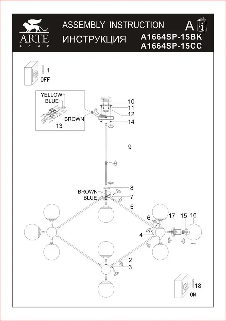 Подвесная люстра Arte Lamp Bolla A1664SP-15CC