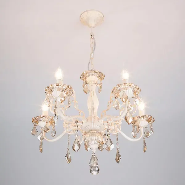 Подвесная люстра Eurosvet 3281/5 белый с золотом/тонированный хрусталь Strotskis