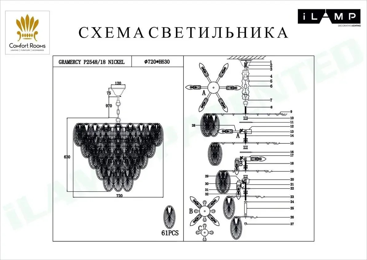 Подвесная люстра iLamp Gramercy P2548-18 NIC