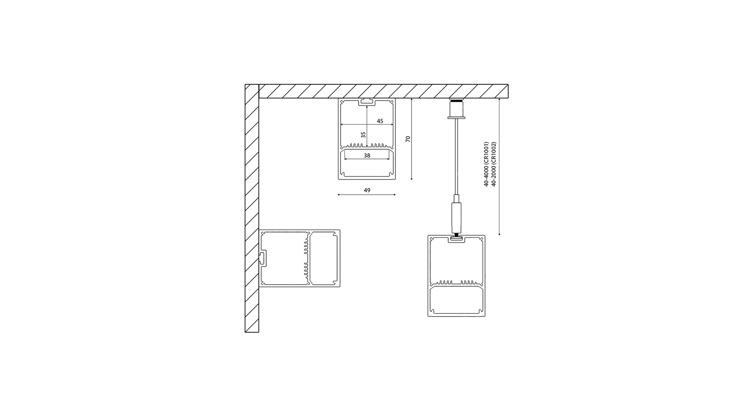 Подвесной/накладной алюминиевый профиль Design LED LS 4970, 2500 мм, анодированный, LS.4970-R