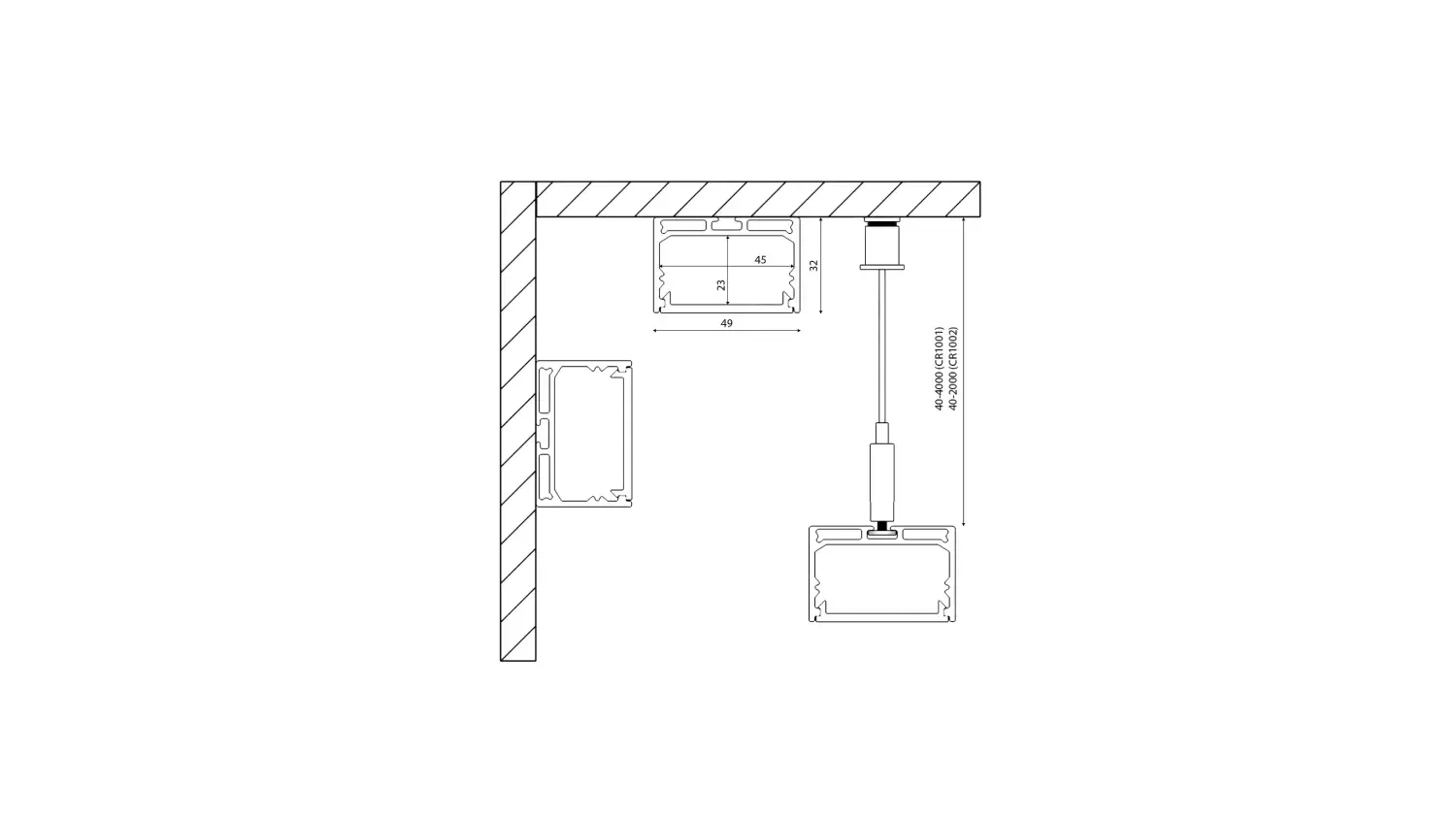 Подвесной/накладной алюминиевый профиль Design LED LS 4932, 2500 мм, анодированный, LS.4932