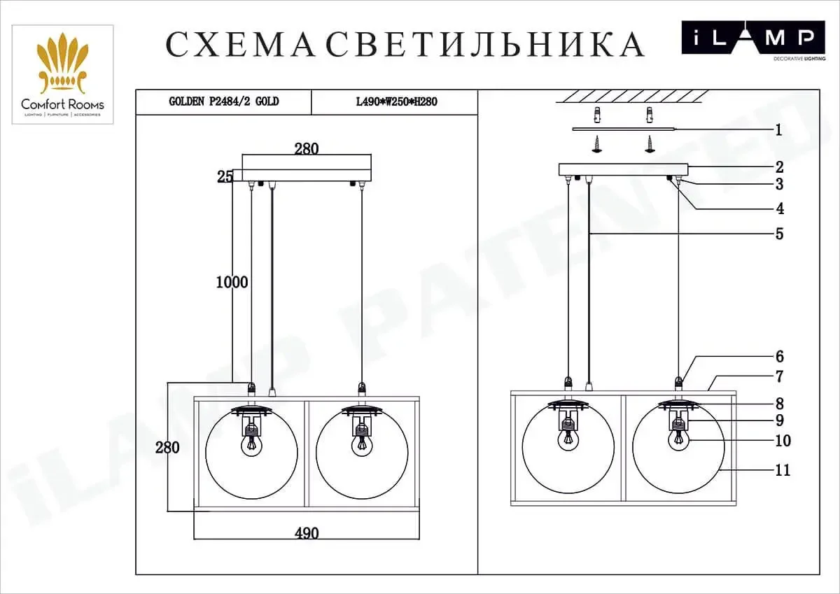 Подвесной светильник iLamp Golden P2484-2 GOLD