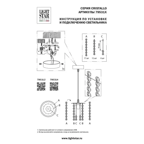 Подвесной светильник Lightstar Cristallo 795312
