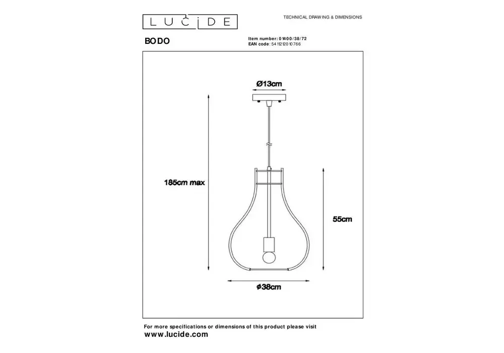 Подвесной светильник Lucide Bodo 01400/38/72
