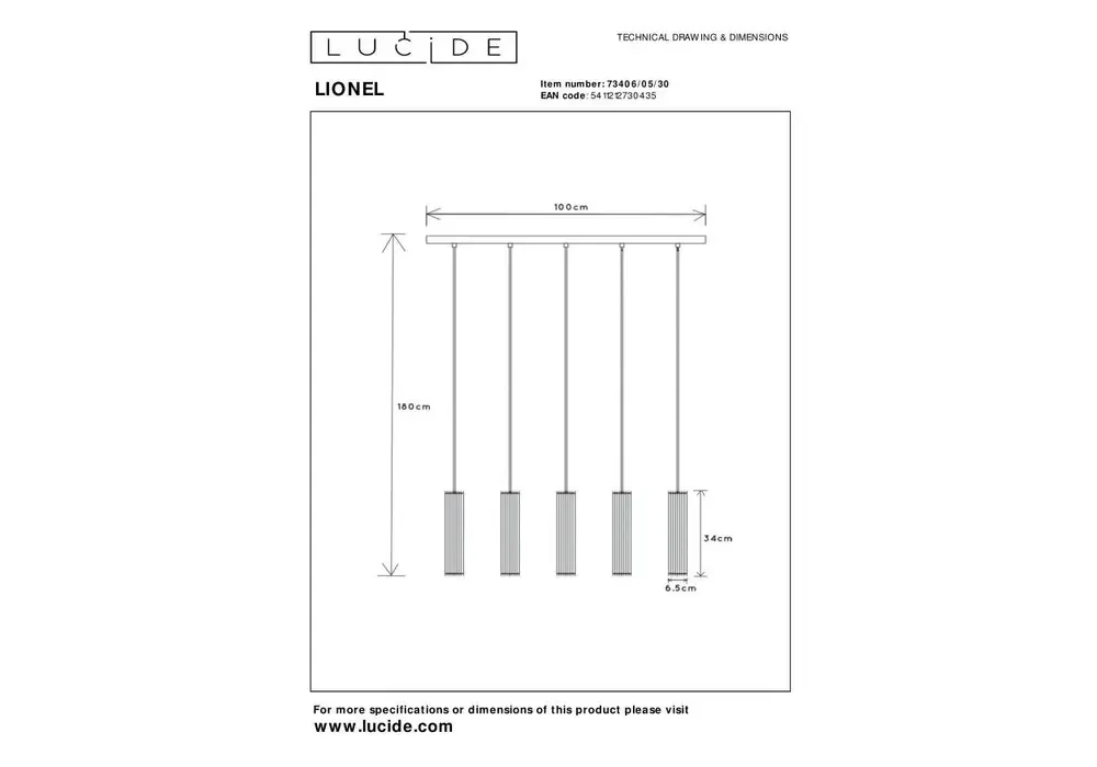 Подвесной светильник Lucide Lionel 73406/05/30