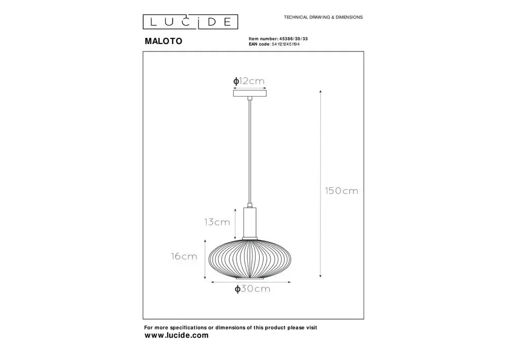 Подвесной светильник Lucide Maloto 45386/30/33