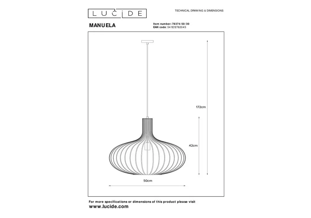 Подвесной светильник Lucide Manuela 78374/50/30