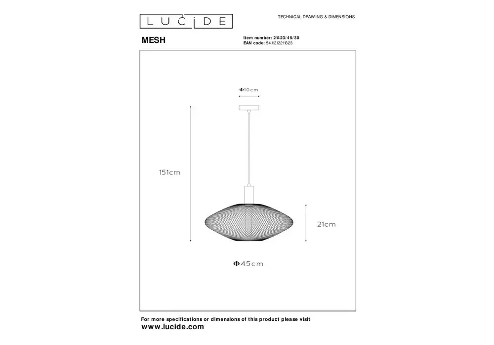 Подвесной светильник Lucide Mesh 21423/45/30