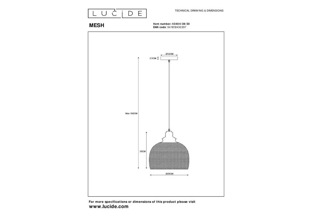 Подвесной светильник Lucide Mesh 43404/28/30