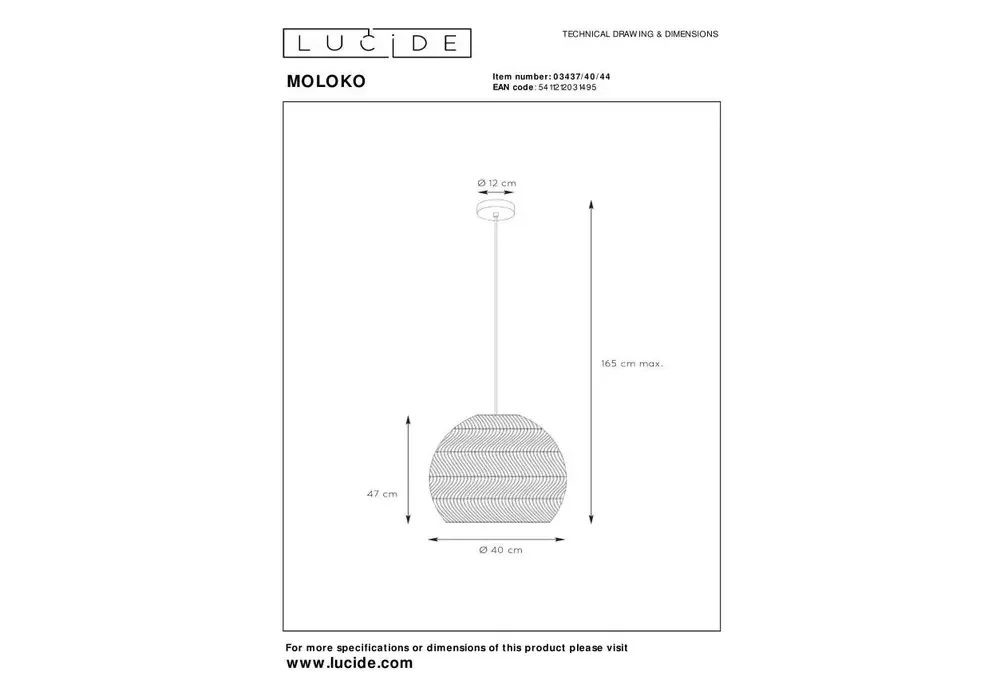 Подвесной светильник Lucide Moloko 03437/40/44