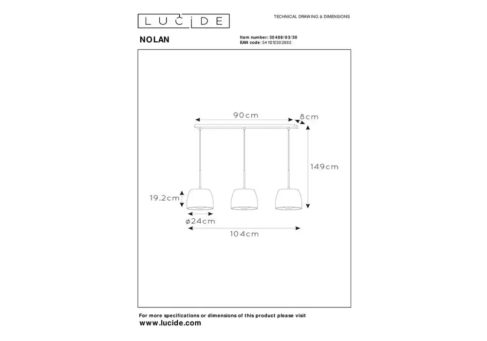 Подвесной светильник Lucide Nolan 30488/03/30