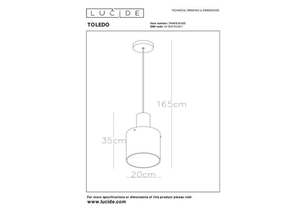 Подвесной светильник Lucide Toledo 74405/01/62